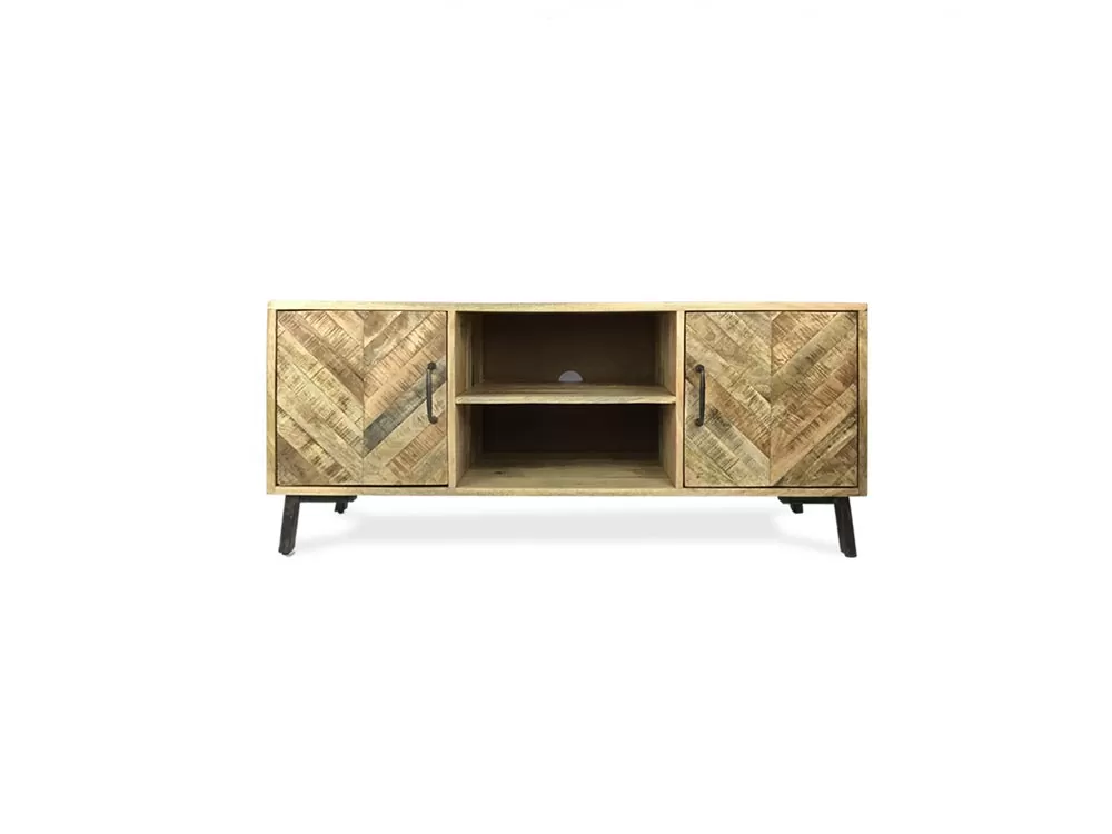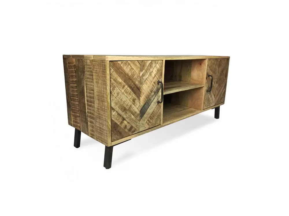 The ALLET solid wood console crystalizes everything we love about Modern Contemporary design in a hand crafted solid mango wood piece that is sized to accommodate today's televisions. Two compartment doors open to reveal completely fitted media cabinet storage.