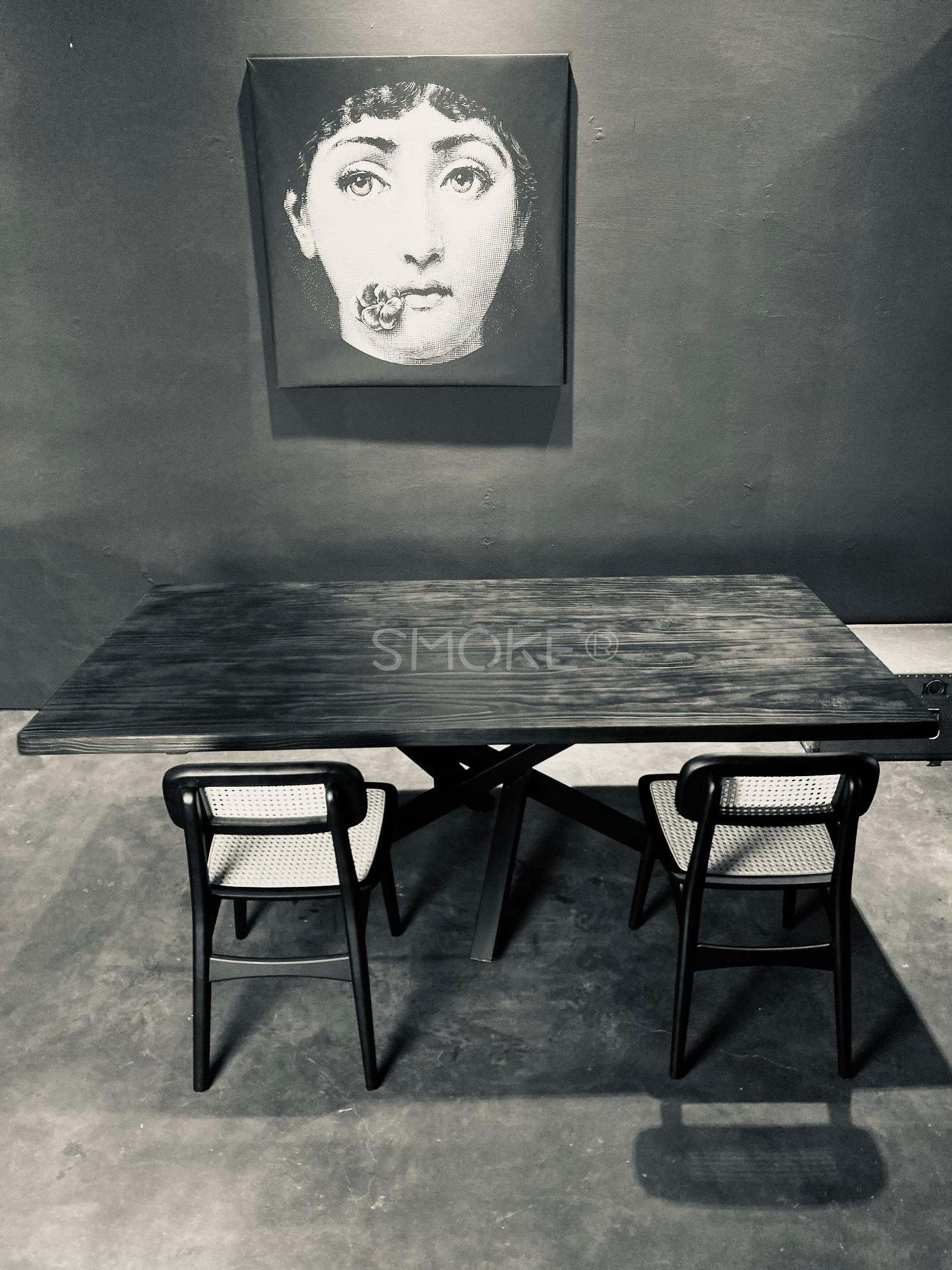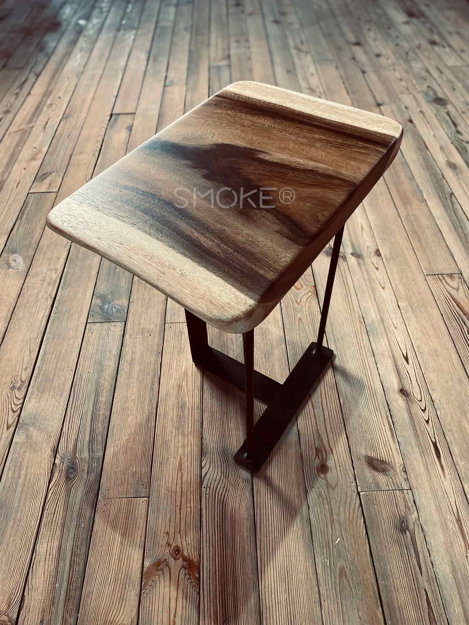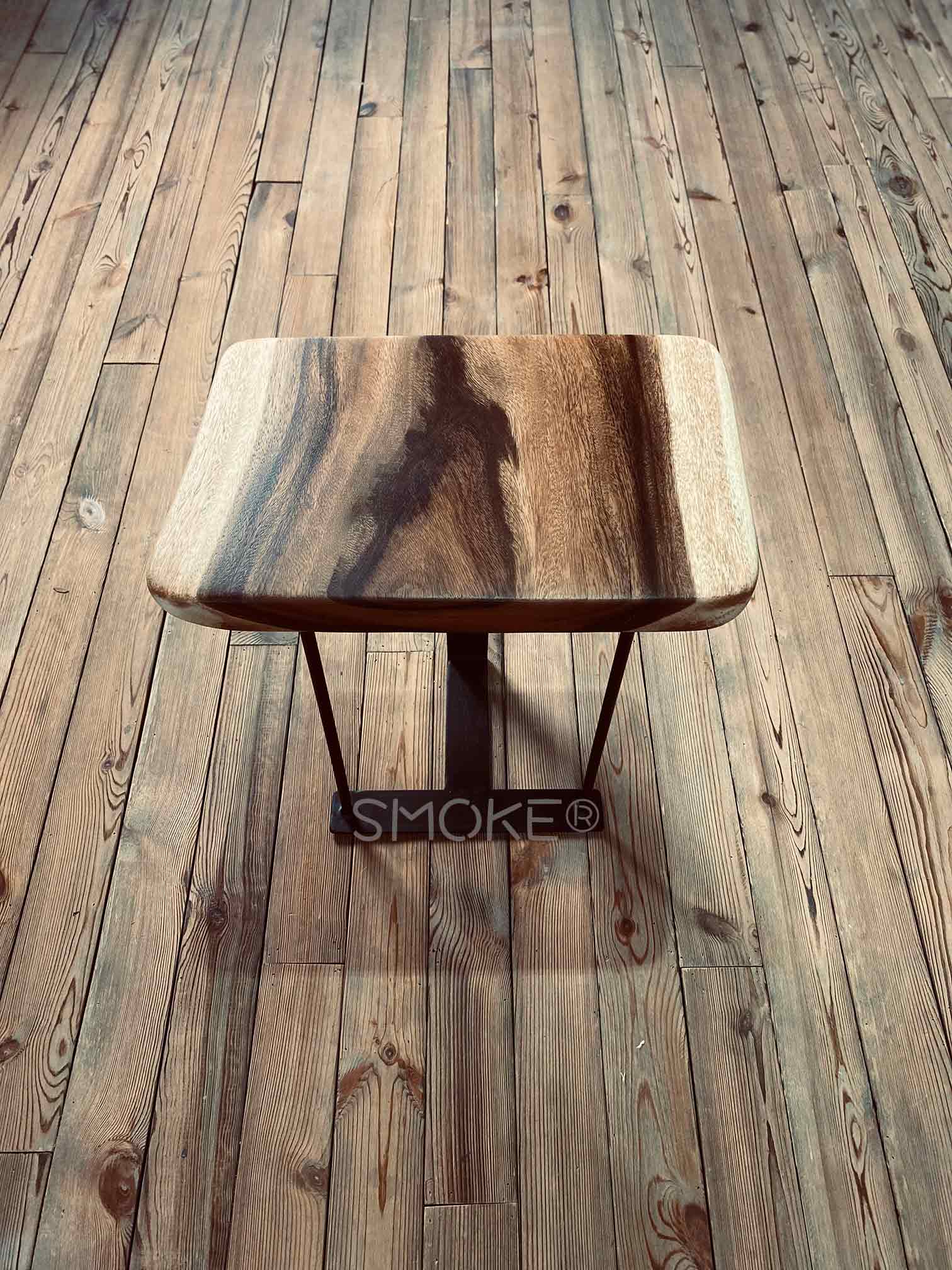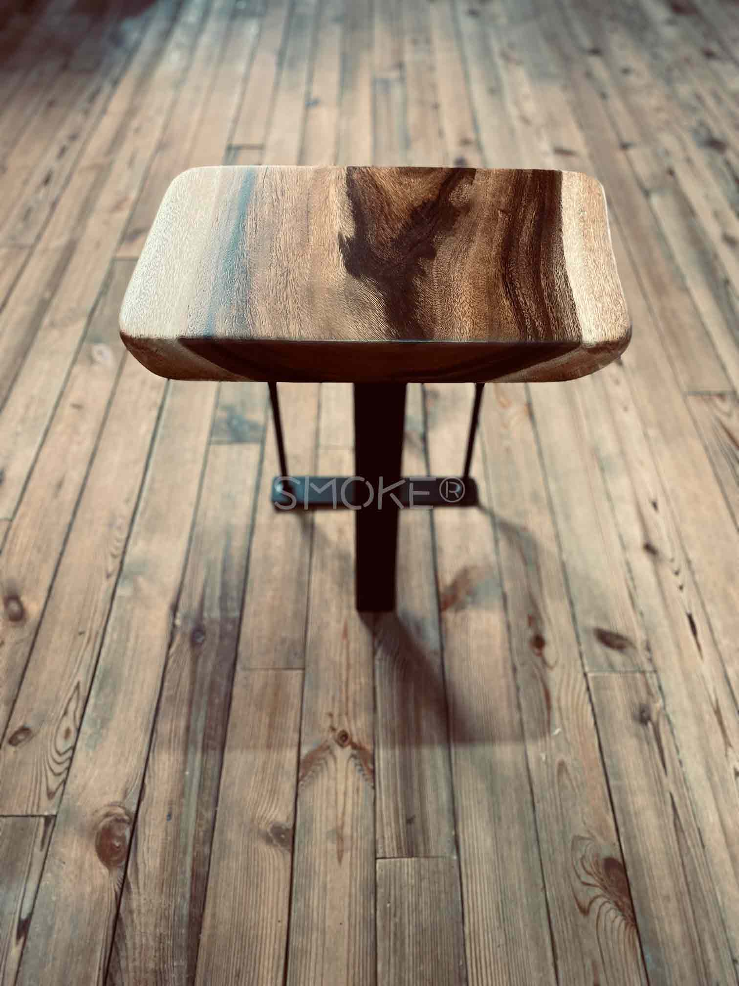 Specially Crafted Metal Stand Design By SMOKE® For The Lolani Wooden Stool Sitting On The Natural Rustic Smoke Panel