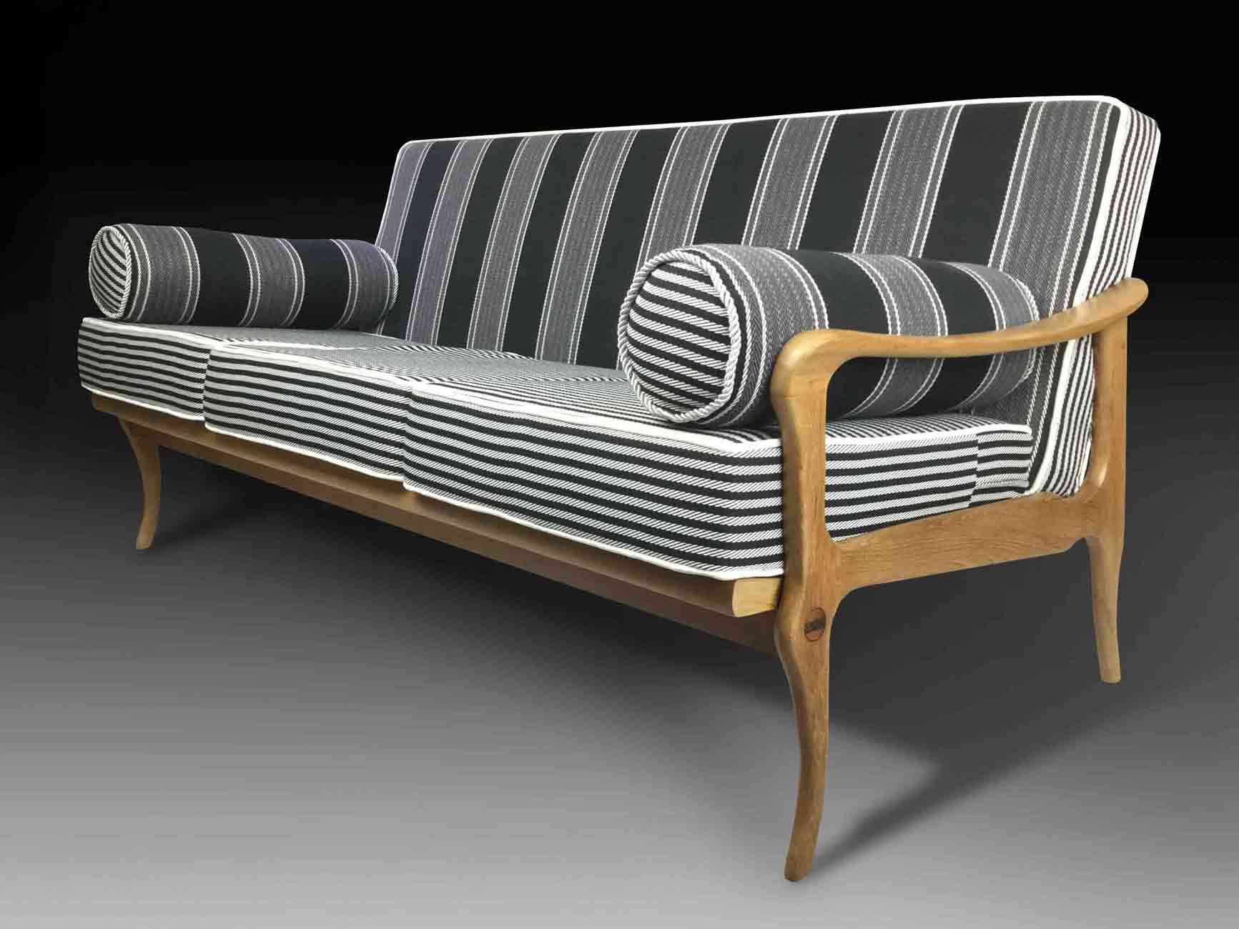 The Gianni Sofa is a modern interpretation of the mid-century furniture style with its sleek, clean look and innovative mix of different materials. The teak wood armrests provide a hint of warmth to the powder coated metal frame, while the upholstery is furnished with high quality faux leather for a luxurious feel and experience. The polished, classic look of the Gianni Sofa makes it a perfect piece for the modern home or office.