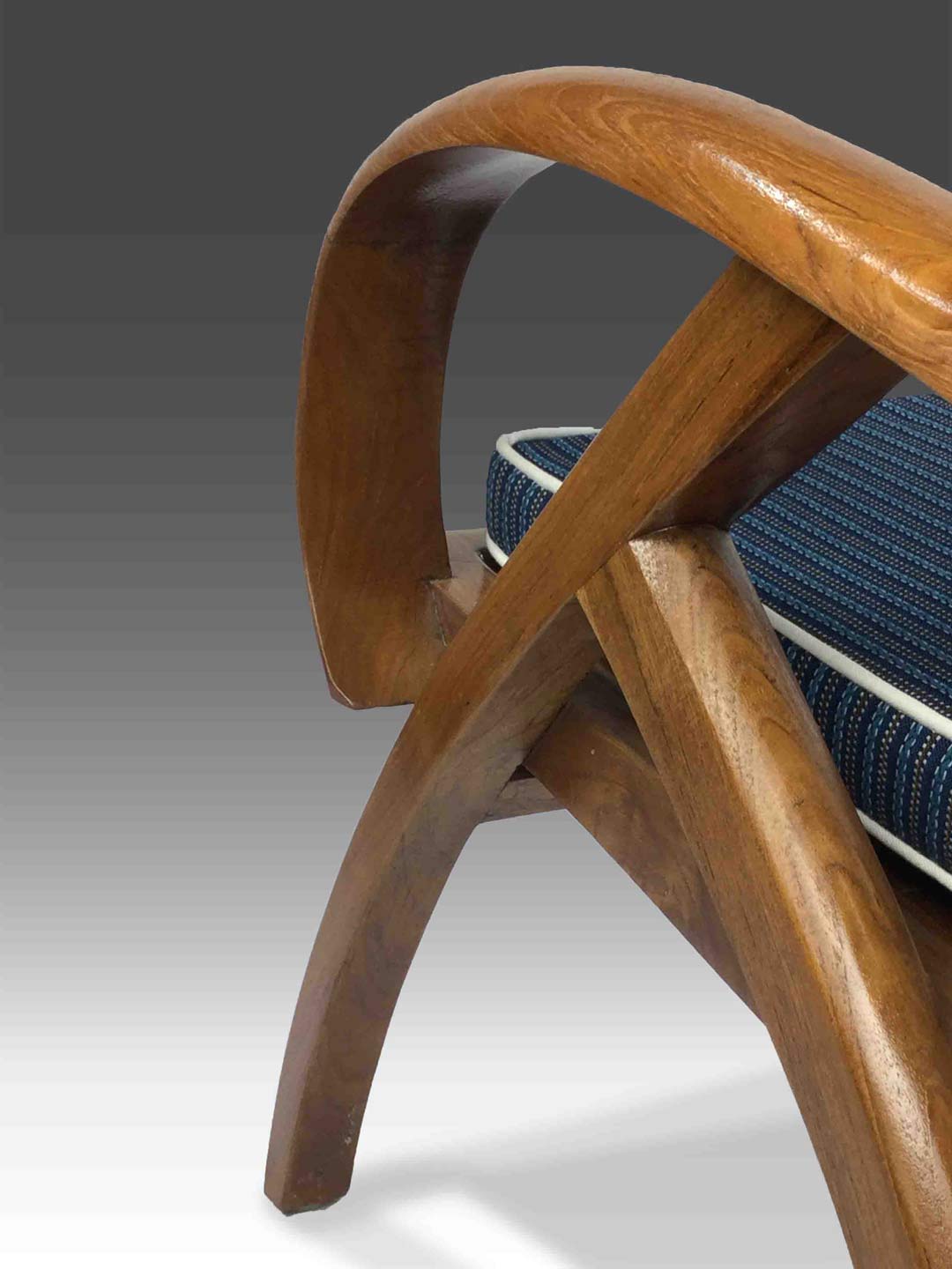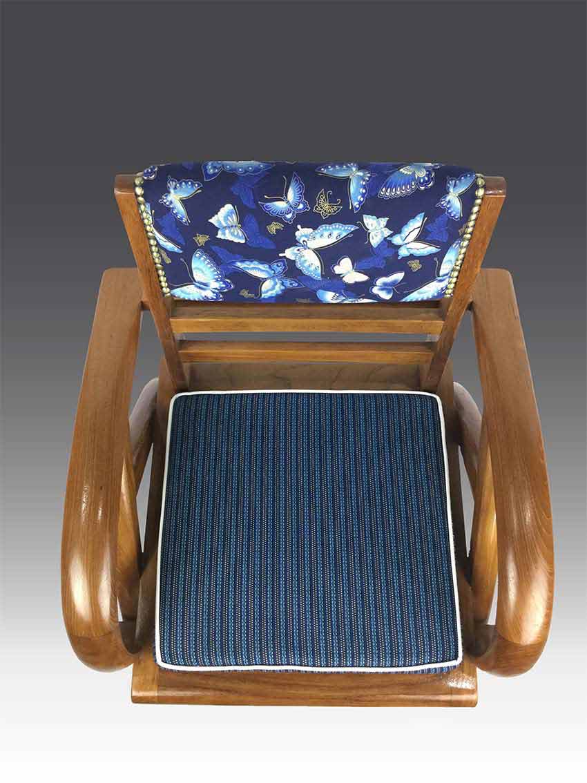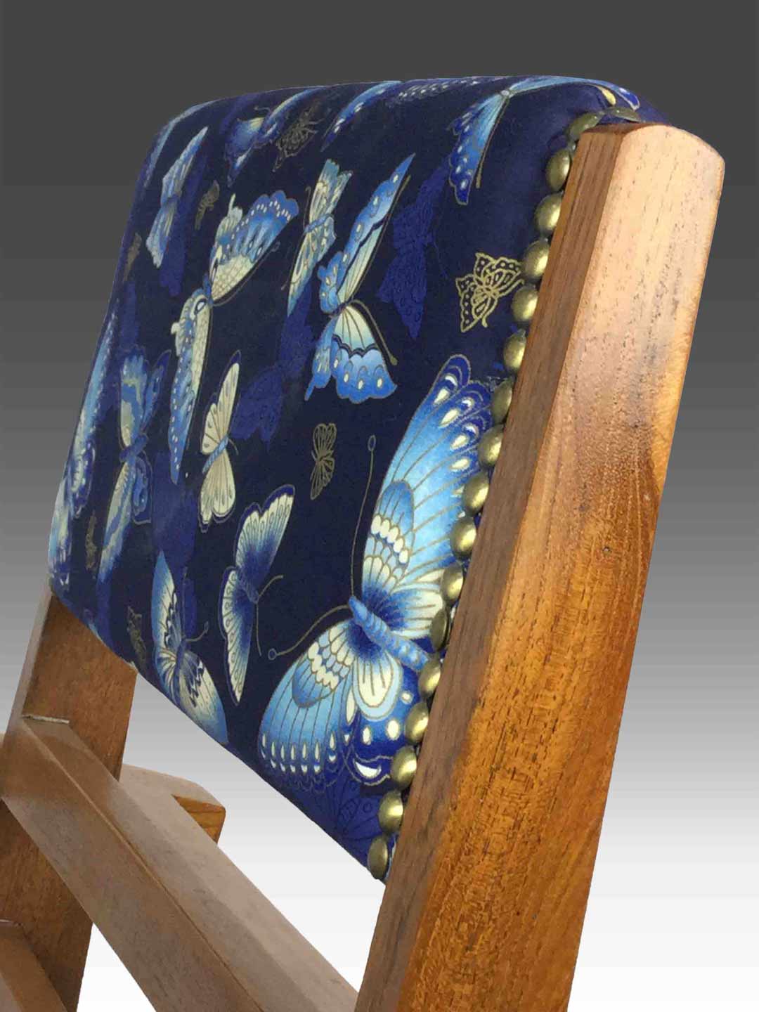 Built with solid teak wood, the Adriel chair provides the perfect seat to recline and relax in after a long day, with its tilted profile and comfortable, curved armrests. The seat and backrest is lined with fabric specially designed with the 80s in mind, with the butterflies against a plush navy background for a whimsical yet classy vibe. The Adriel chair also features a foldable backrest, making it the perfect furniture piece for smaller homes and interiors.