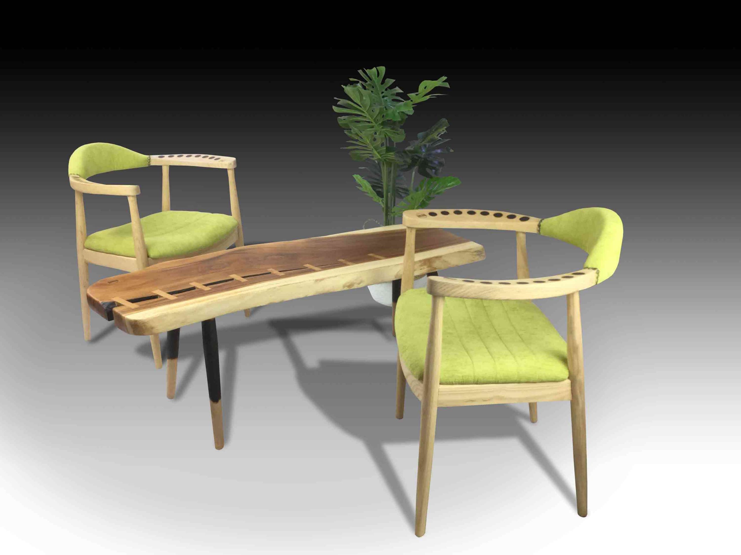 Material : Charred Solid Wood with Premium Fabric