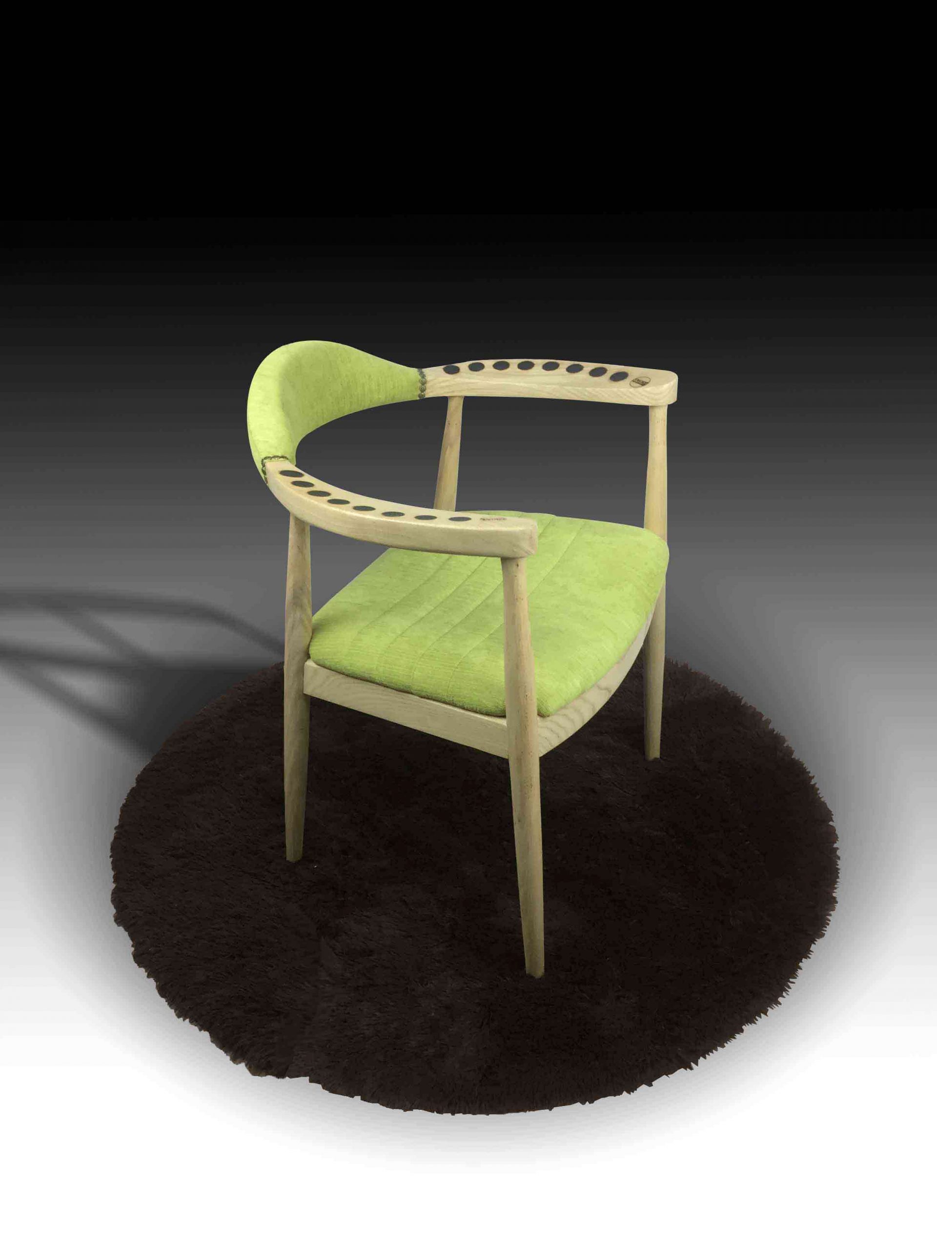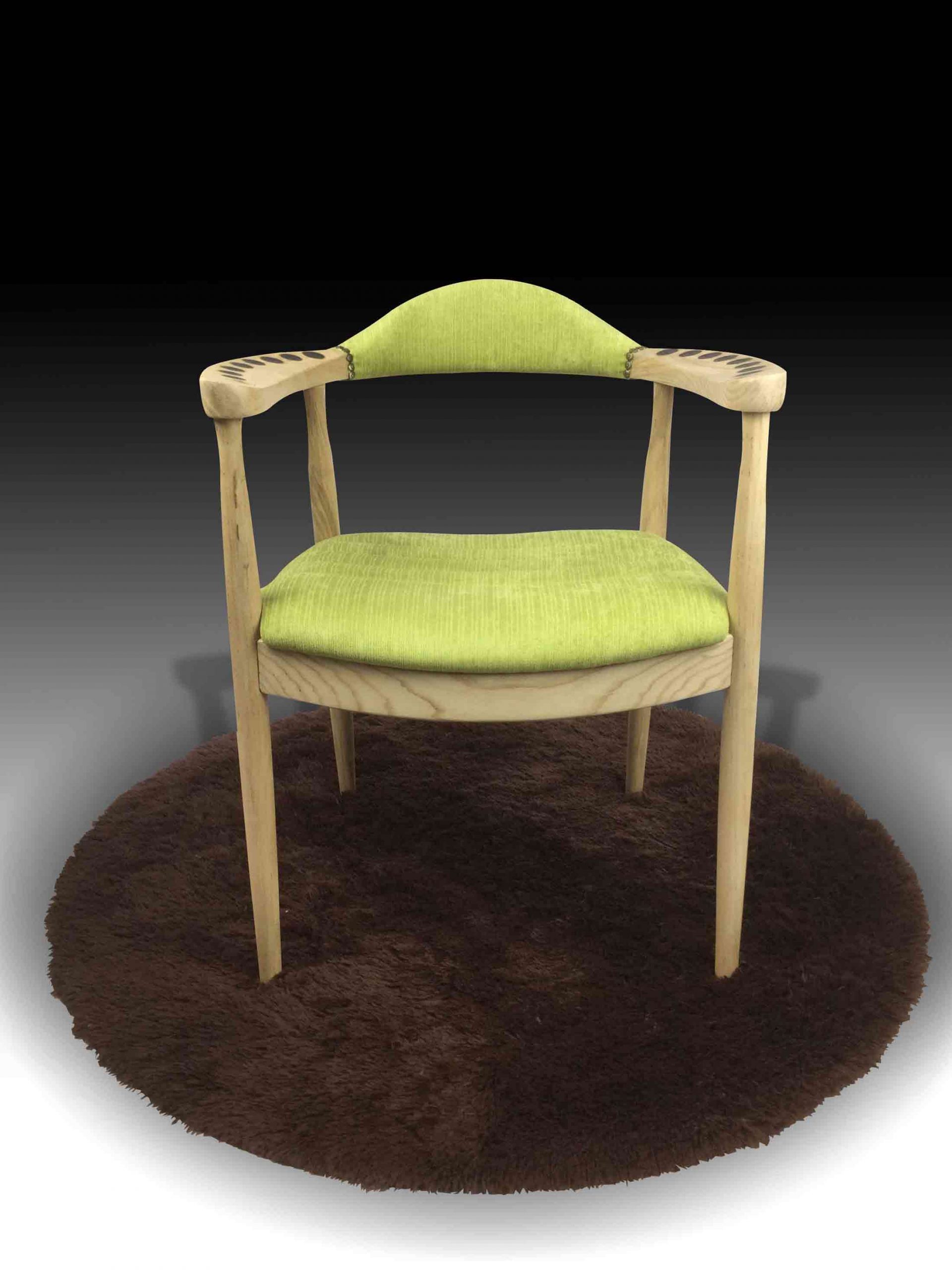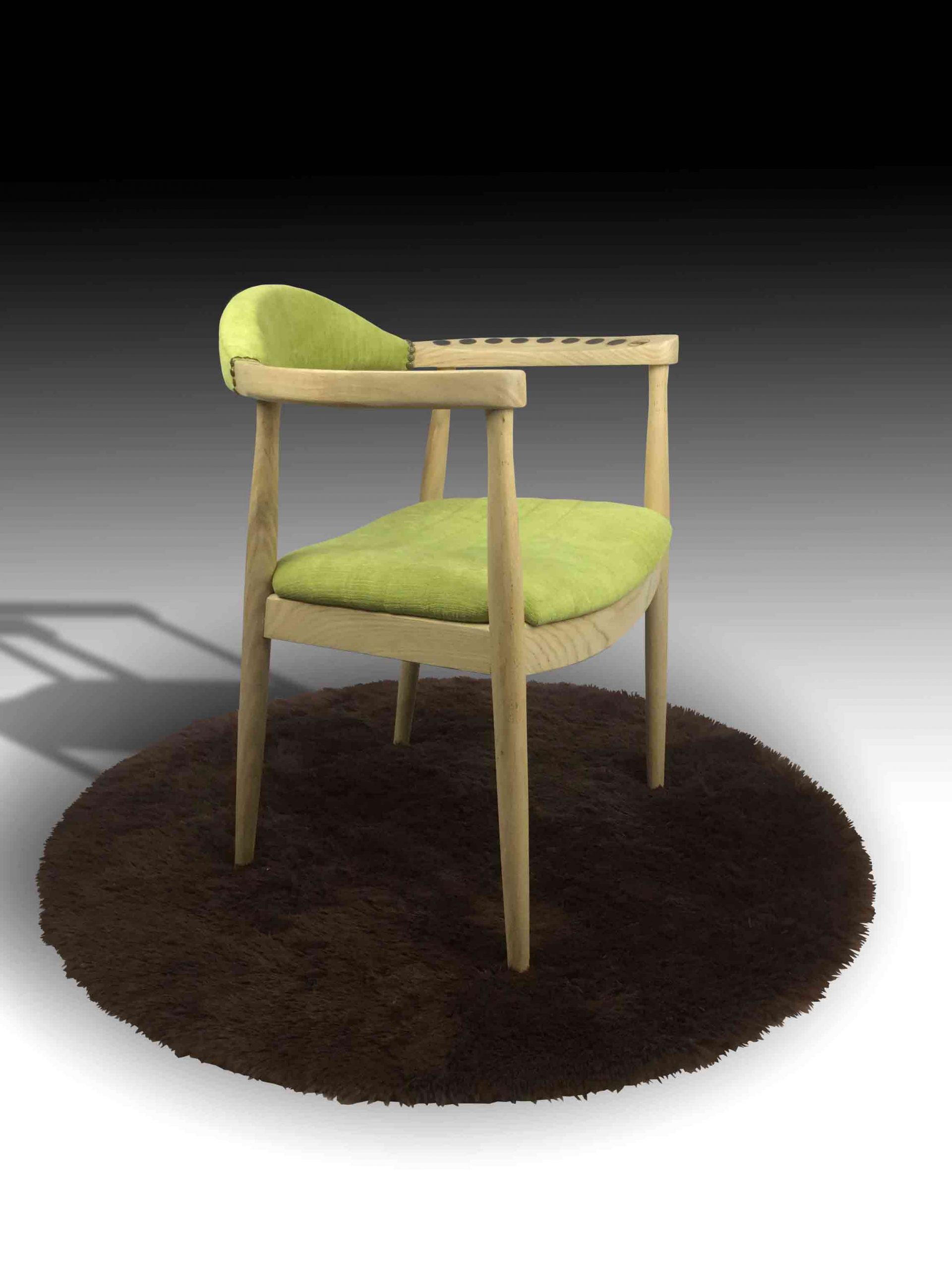 The Irina Armchair is a single seat armchair made in the classic mid-century style to suit a wide variety of interior styles, yet still adding little touches of individuality. The ash wood frame is detailed with our signature Shou Sugi Ban technique to create a special charring pattern to the armrests, while the seat and backrest is upholstered with premium fabric in a beautiful grass green, and detailed with flower-shape antique nails for an additional touch. The bright, clean style of the Irina chair makes it perfect for either homes or offices.