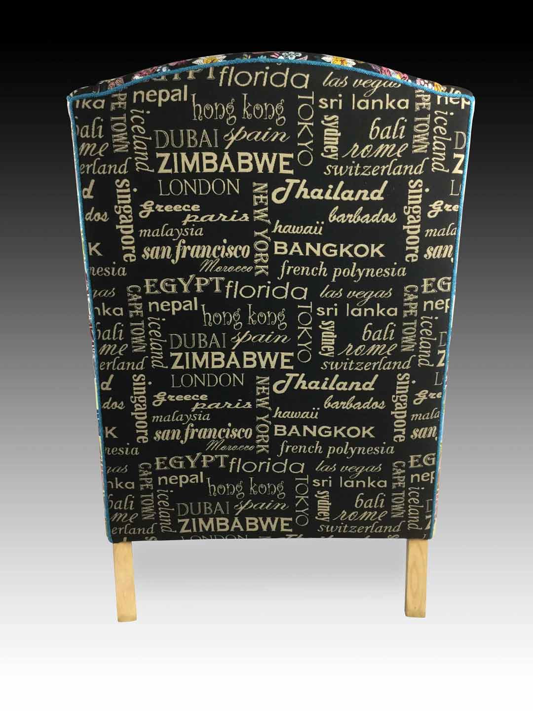 Material : Designer Fabric Upholstery with solid wood hand rest