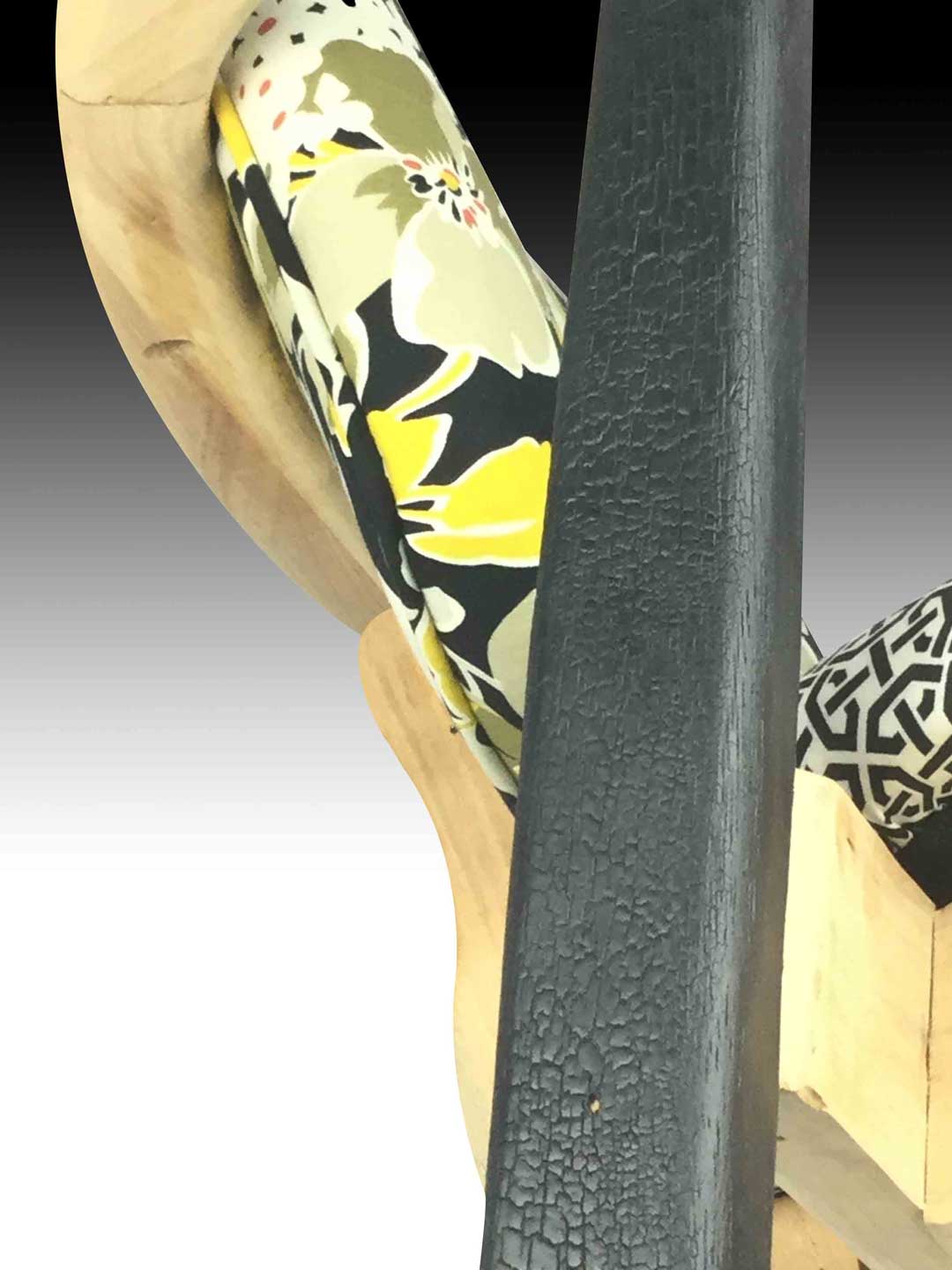 Material : Charred Solid Wood with Premium Floral & Checkered Fabric