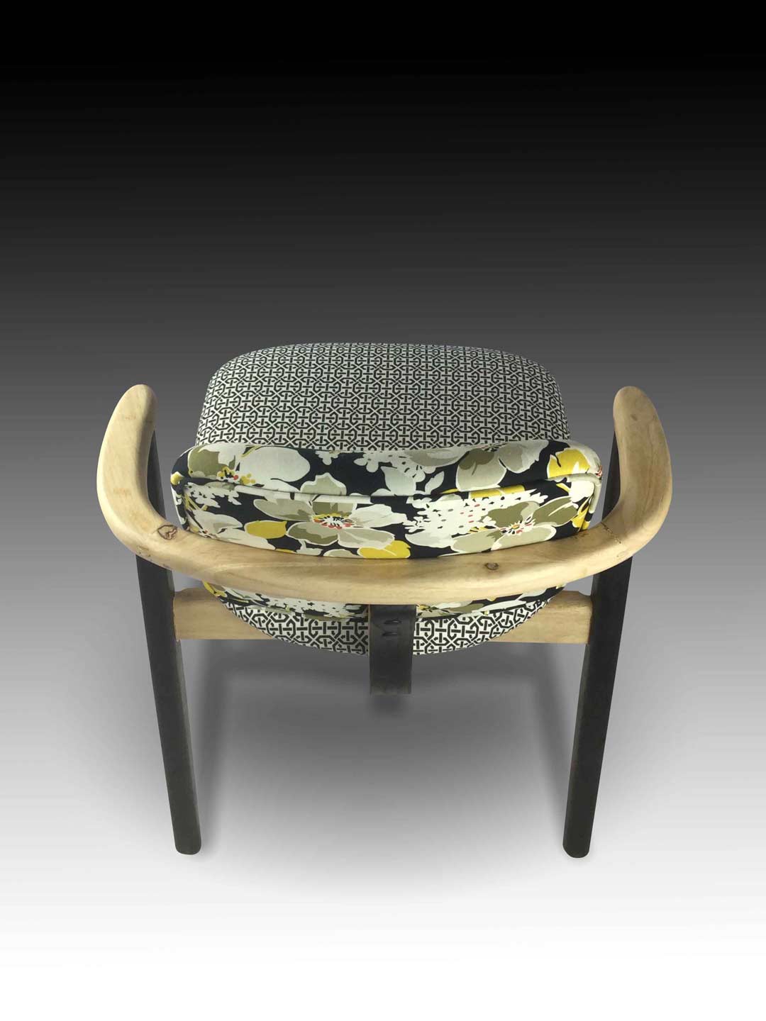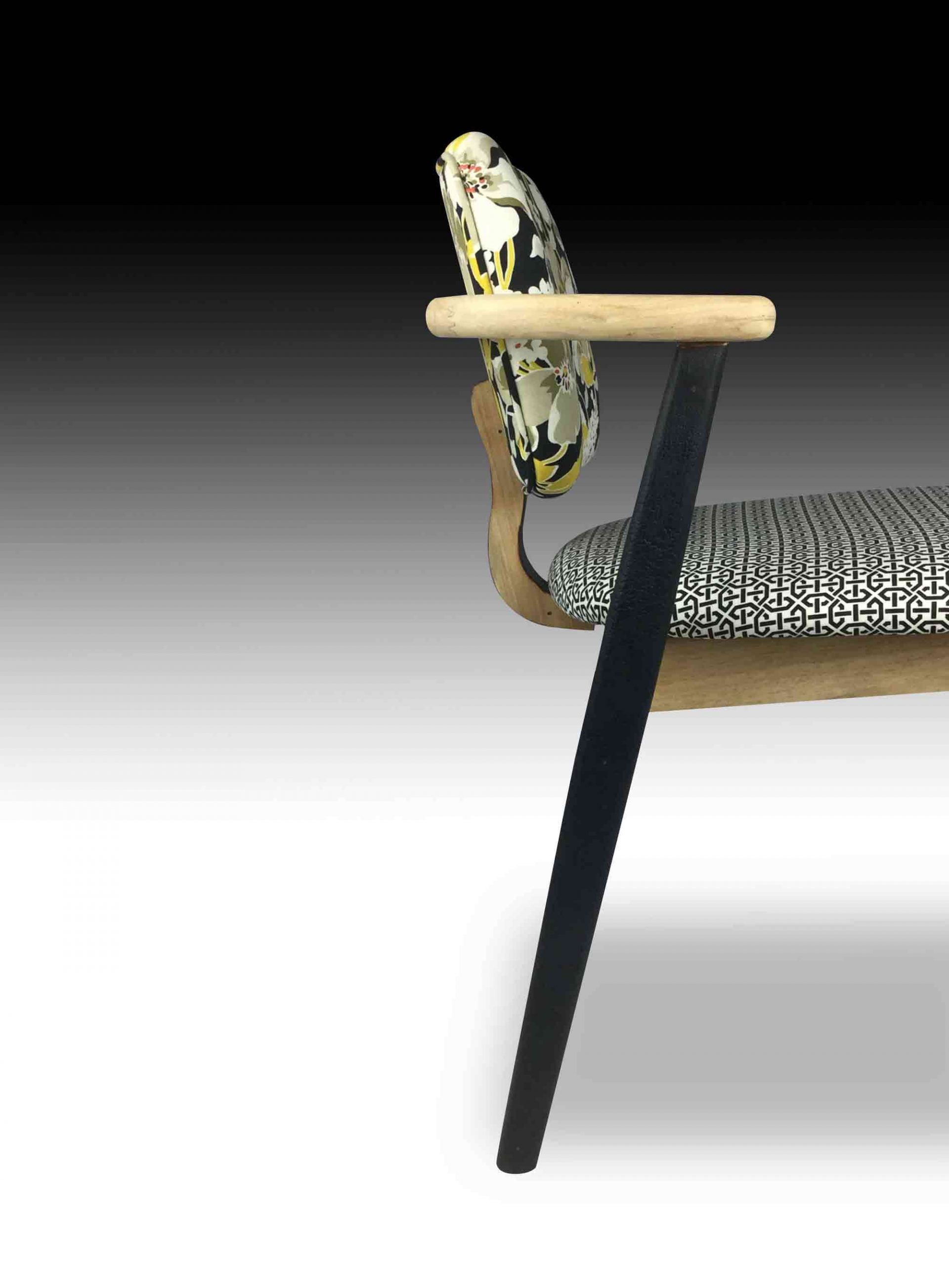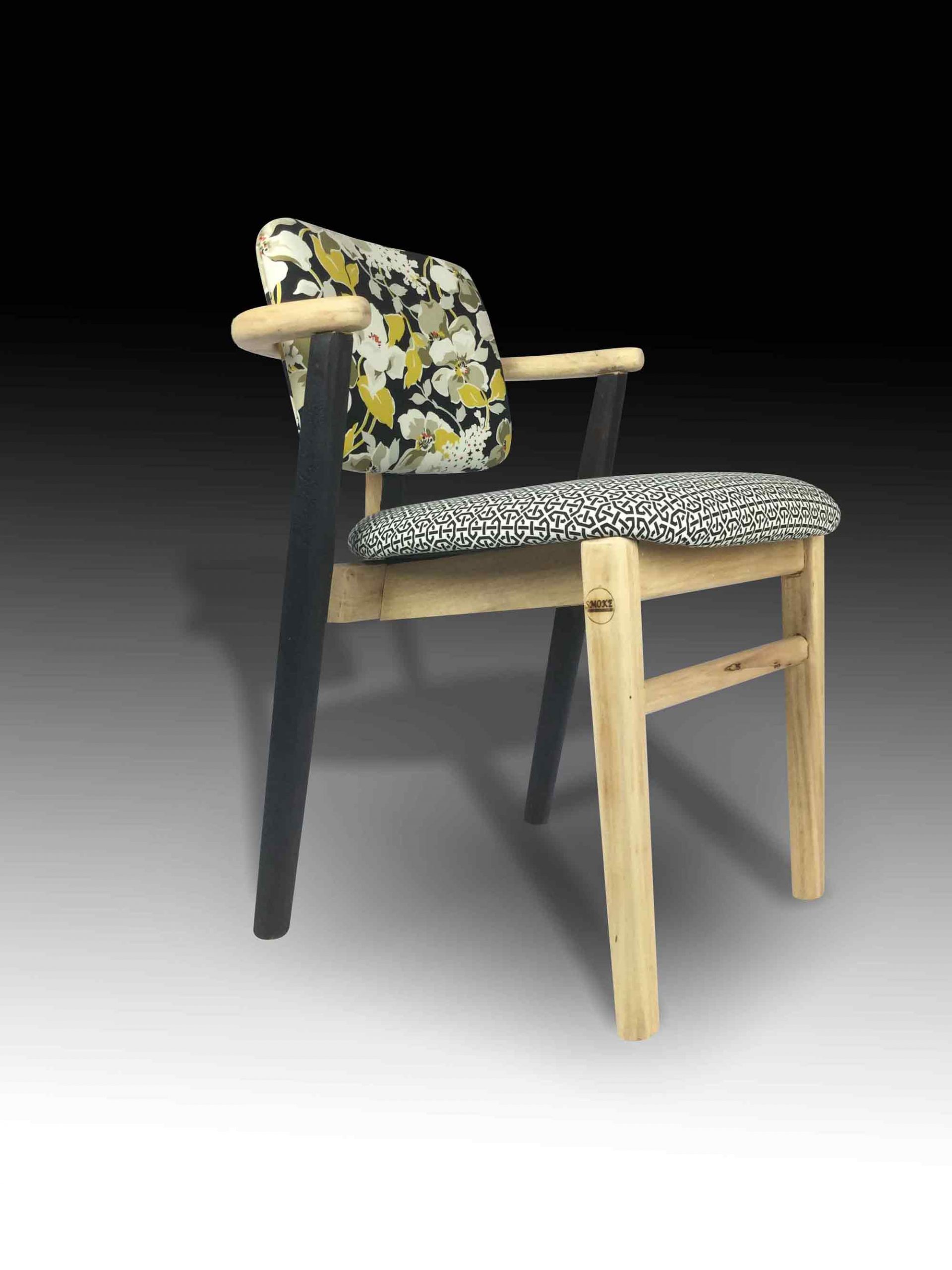 The Lyndi Chair is a solid wood dining chair inspired by mid-century modern furniture styles with their classic and clean designs. The solid wood frame is carefully charred with our signature Shou Sugi Ban technique to add a touch of contrast with the light colour of the wood frame, and the seat and backrest upholstered with our specially designed retro-inspired fabric with beautiful florals and prints. The versatile yet classic look of the Lyndi Chair makes it a perfect piece for the living room or the dining table.