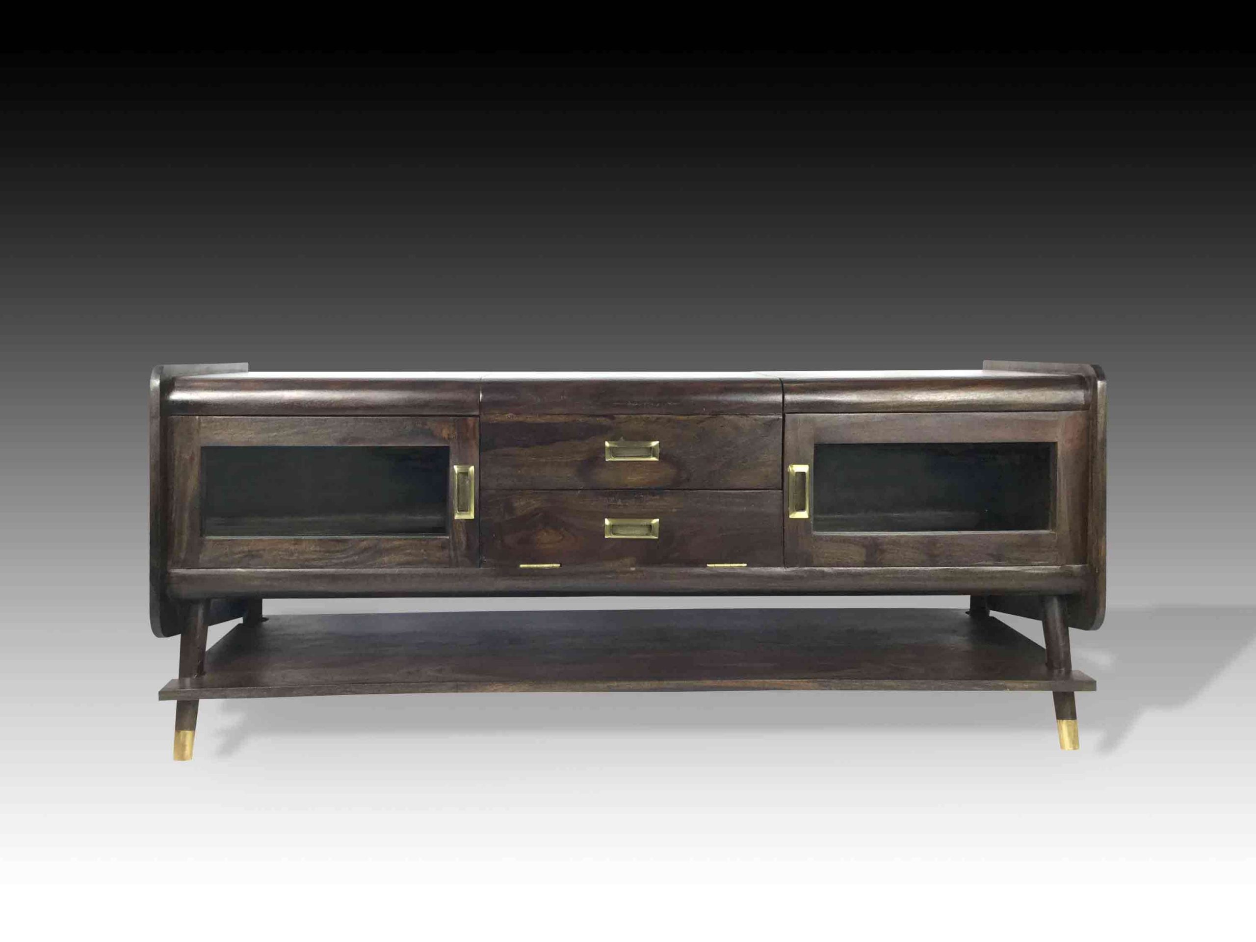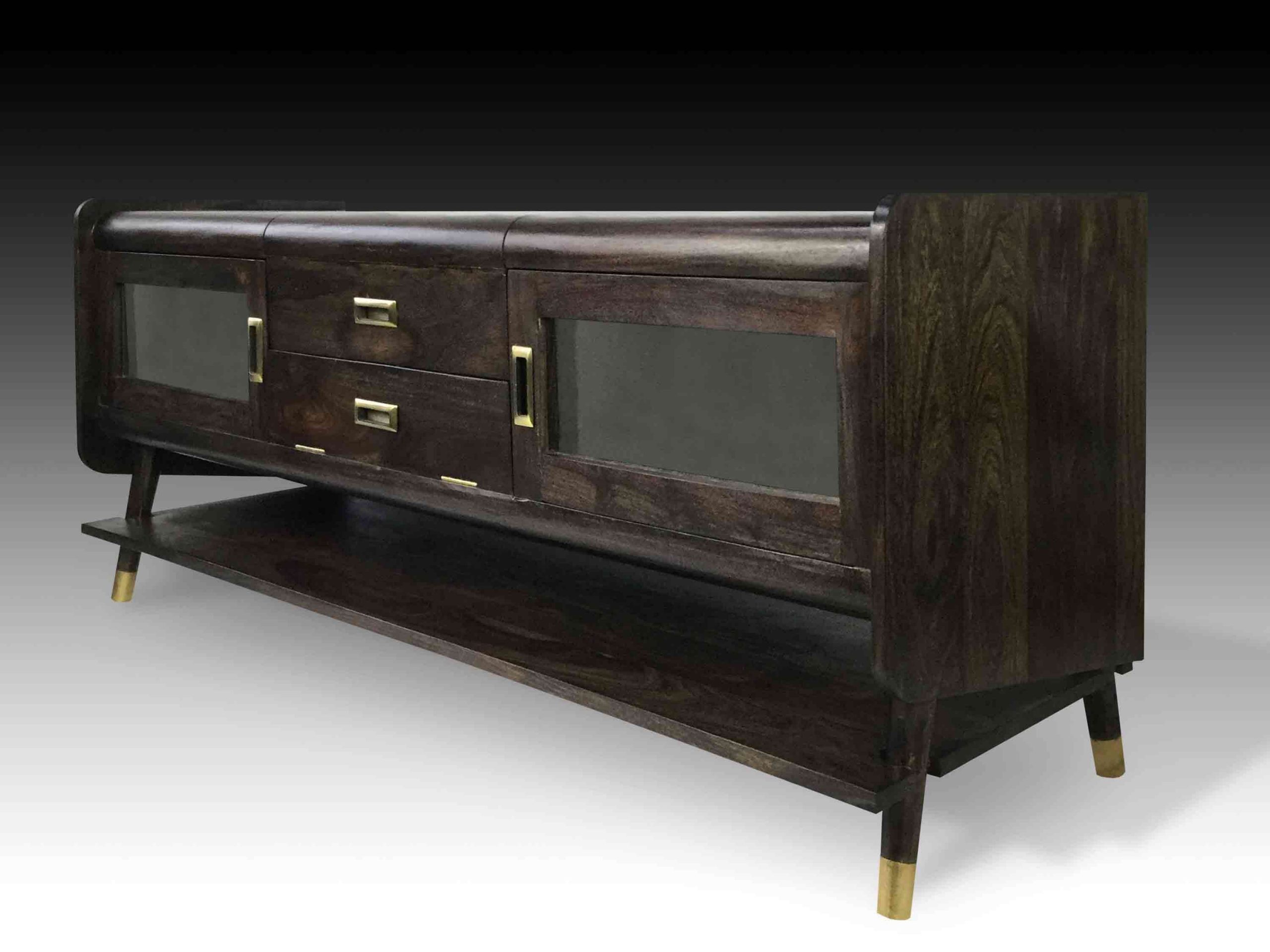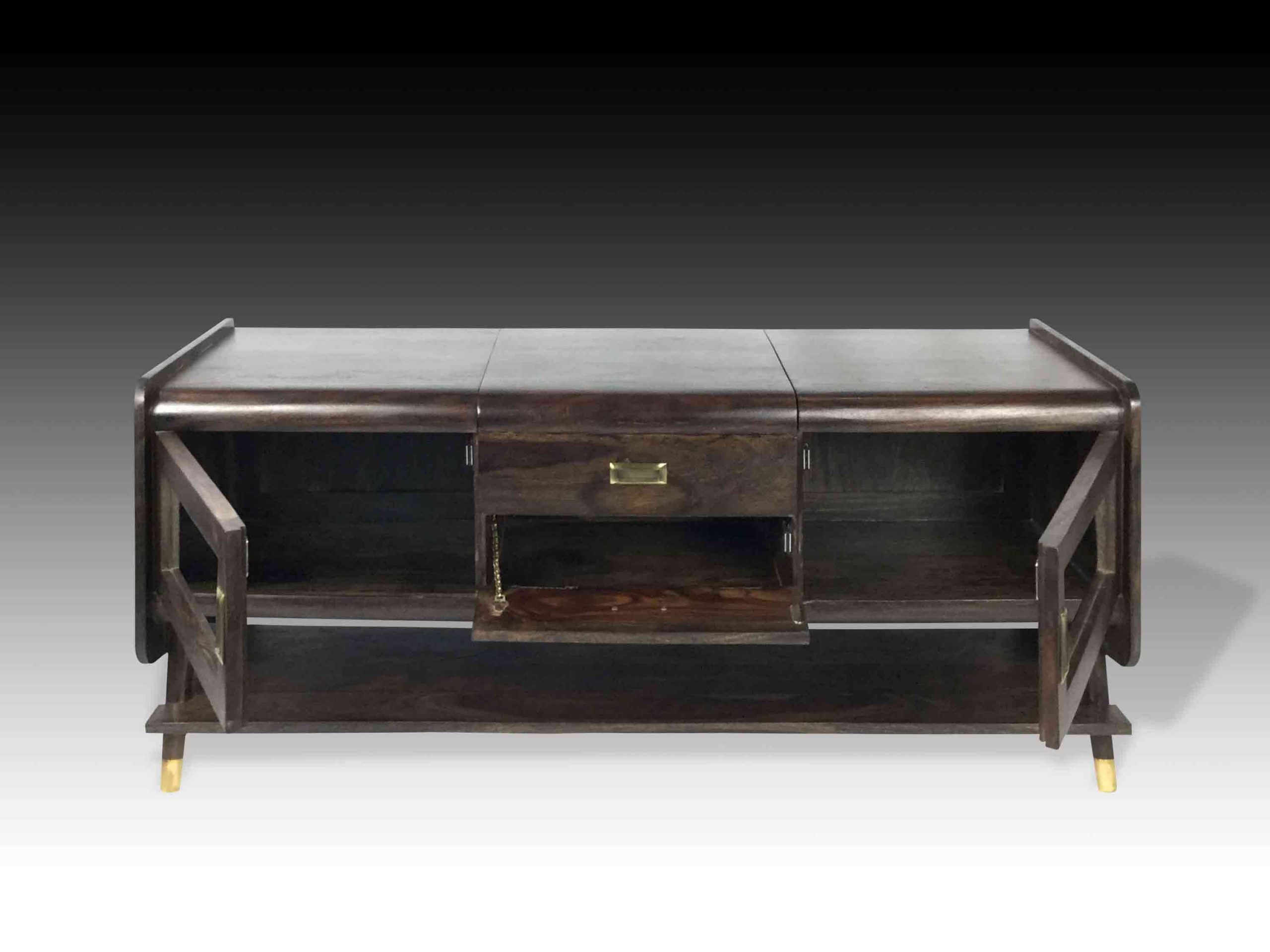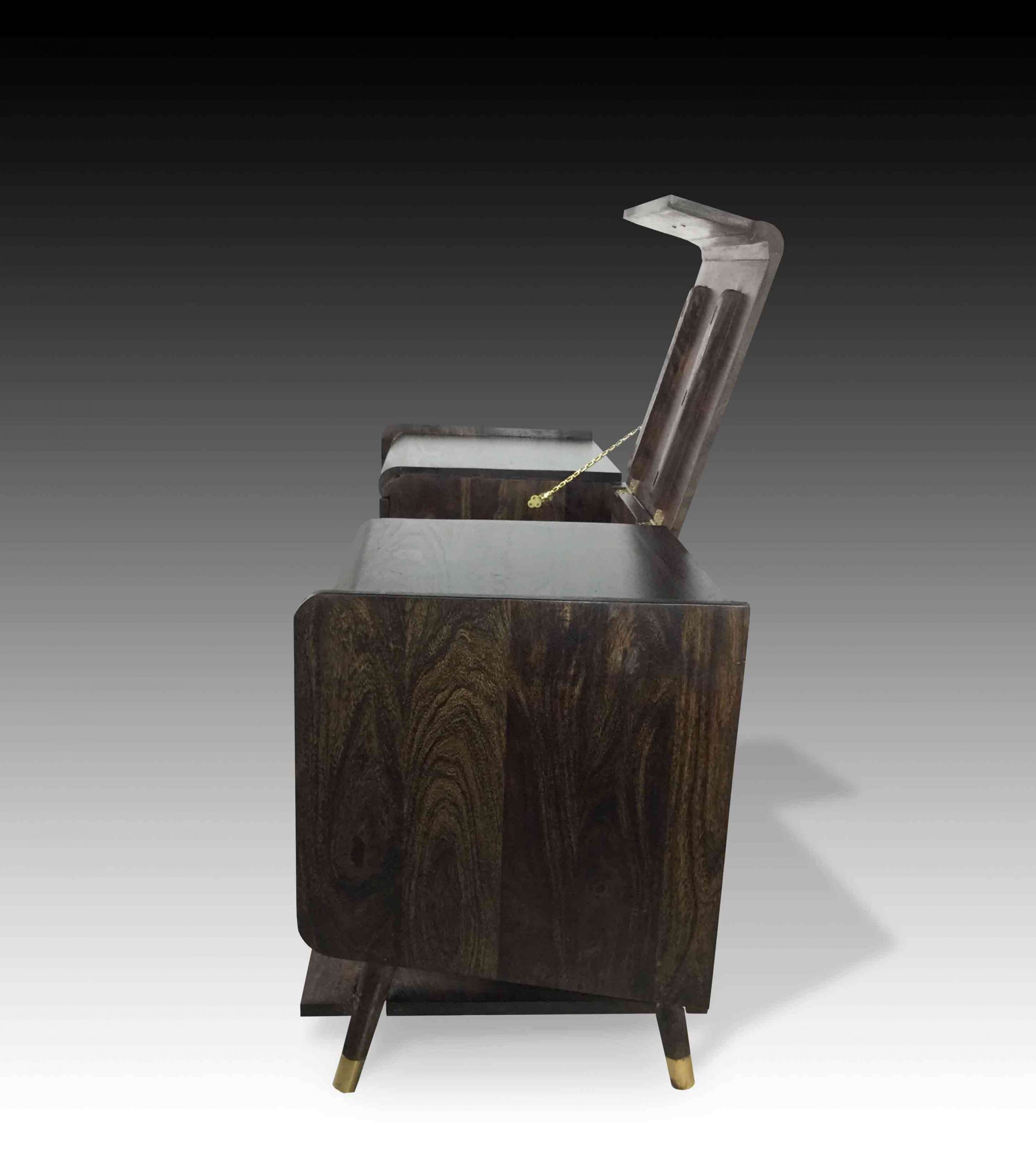 The Kalahi Audiophile Table is an elegant masterpiece. Delicately handcrafted from Acacia wood, this conversational table is carefully treated to reflect the exquisite grain patterns and texture of the raw material. With streamline and sleek pencil legs with metal brass capping complementing the beautiful hue of the wood, this minimalistic industrial table will not fail to mesmerise you and your guests. The multiple compartments serve as a perfect way to store your vinyl player and records. If you consider yourself a vintage music enthusiast, settling for an ordinary table will be an unfortunate misfit. Invest in our bespoke collection of audiophile tables that will not only bring out the best quality of music but also complement your music room or area. Entertain your guests with a musical evening of rich tunes with your vintage audiophile displayed upon our exquisite audiophile table. Complete your audiophile table with the antique vinyl player, amplifier and speakers.