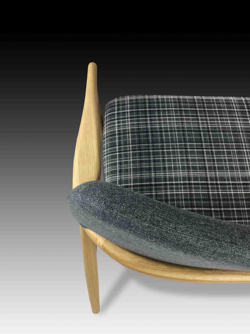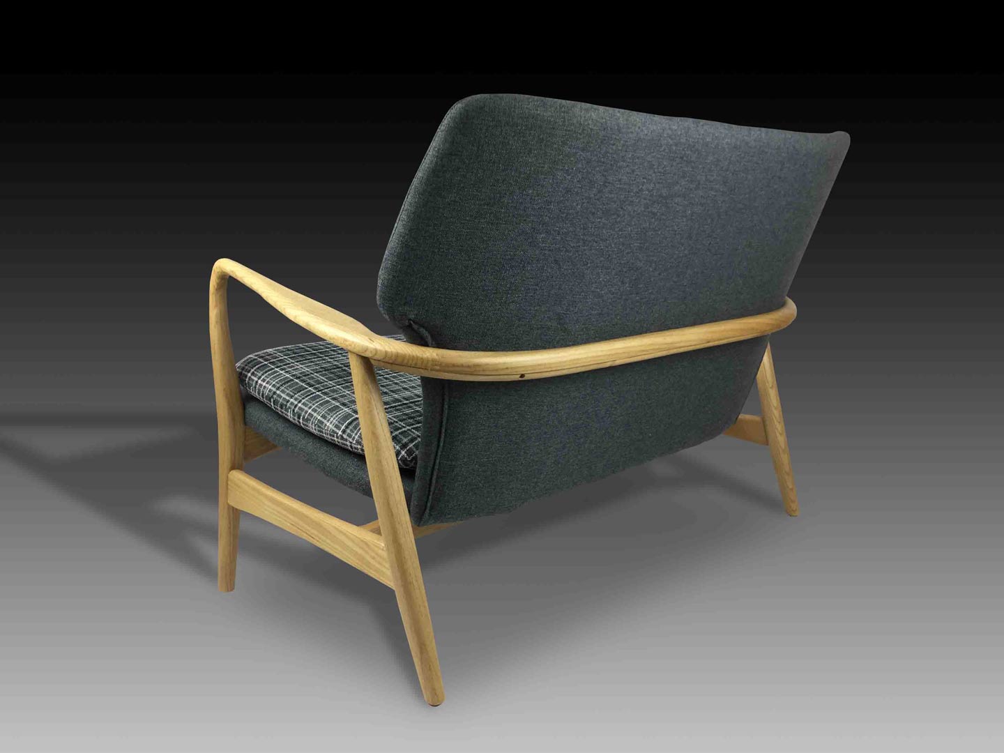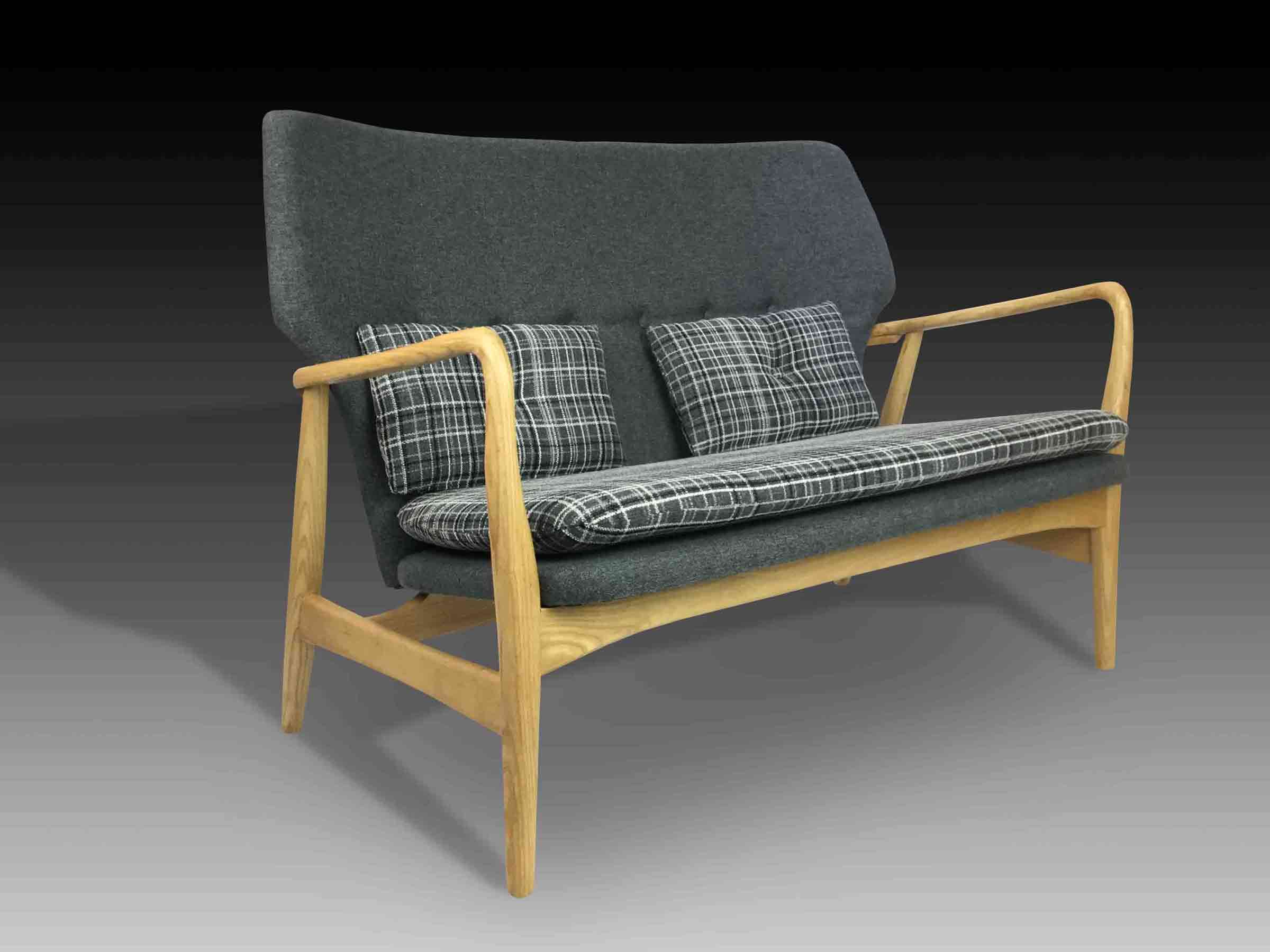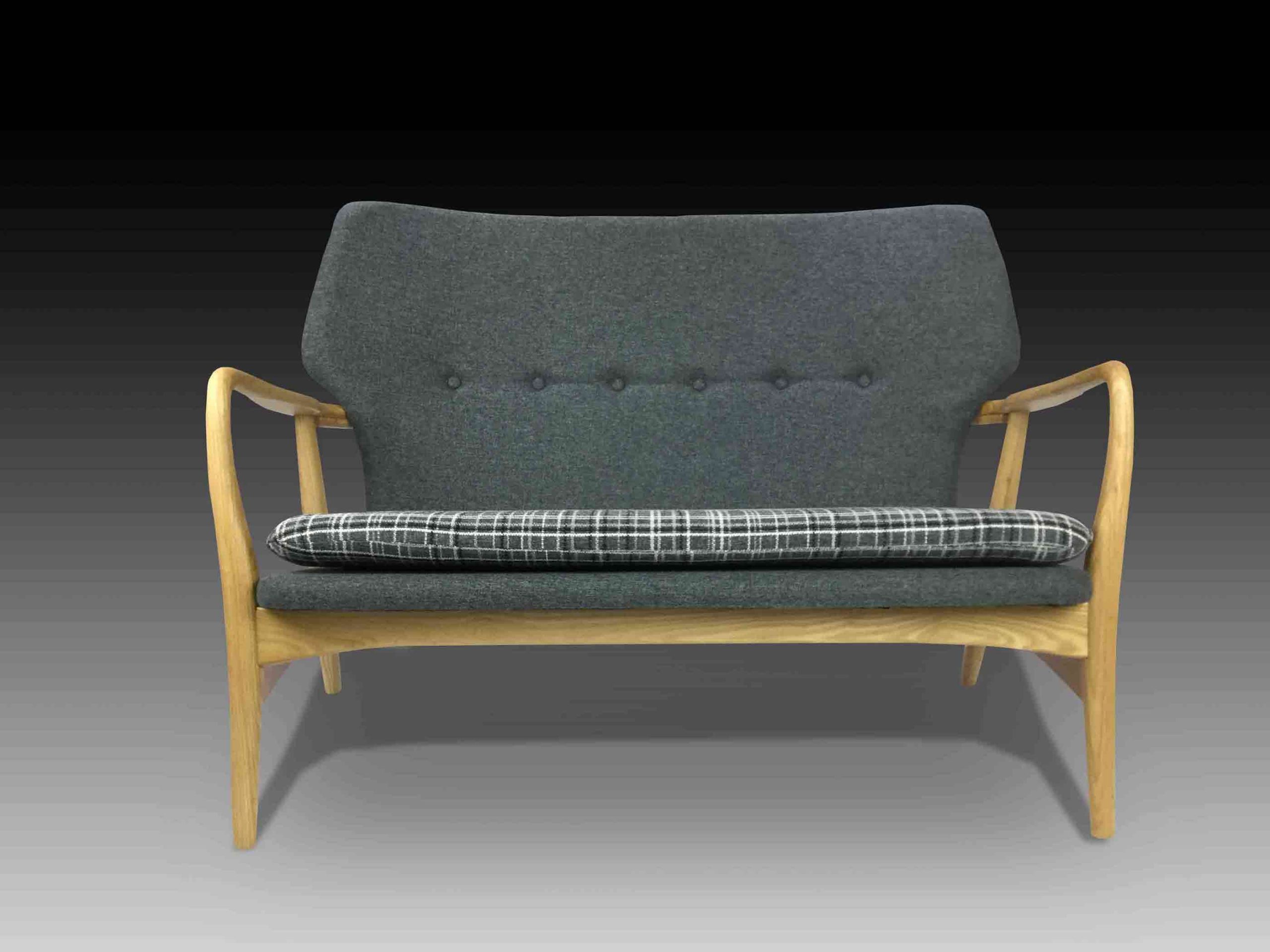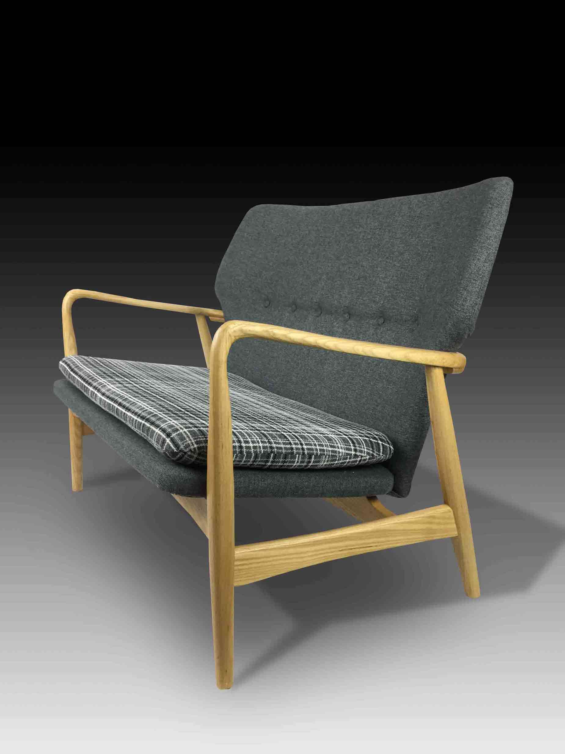 The Deopgae Sofa is a double-seater sofa with a classic mid-century inspired look. The gentle, organic curve of the backrest is contrasted with the clean lines of the ash wood frame, creating a sleek, uncluttered silhouette. The Deopgae Sofa is upholstered with a specially chosen muted grey fabric to create contrast with the lighter ash wood frame, while still keeping an understated, classy air. The clean look of the Deopgae Sofa makes it the best choice for modern interiors or the modern office.