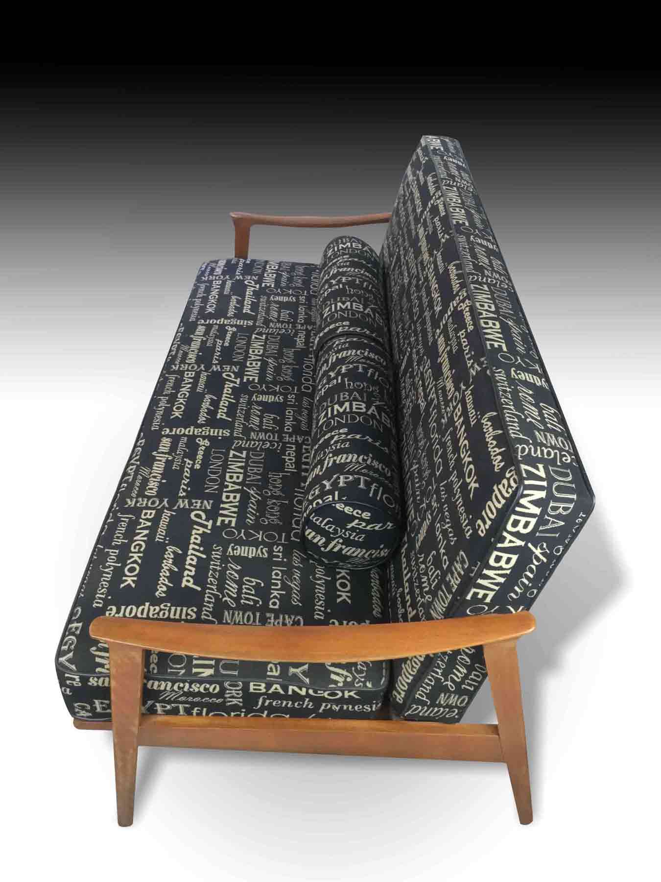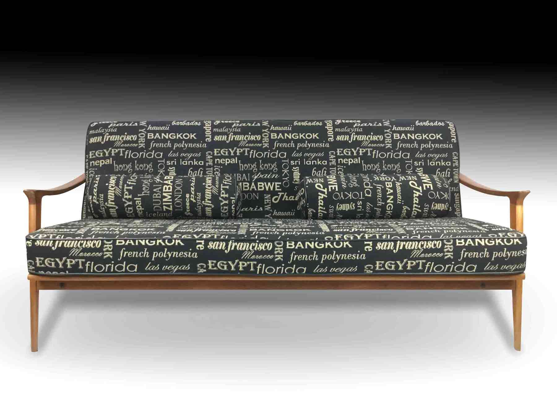 The Francisco Sofa is a three-seater sofa with a solid teak wood frame and specially designed fabric upholstery. Made for the globetrotter, the print fabric is designed with the names of famous cities in the world, perfect to use as a beautiful reminder of your travels, or even as a bucket list of future travel locations. The Francisco sofa also comes with two mini bolsters upholstered in the same designer fabric, its quirky design making it the perfect living room sofa for your family home.