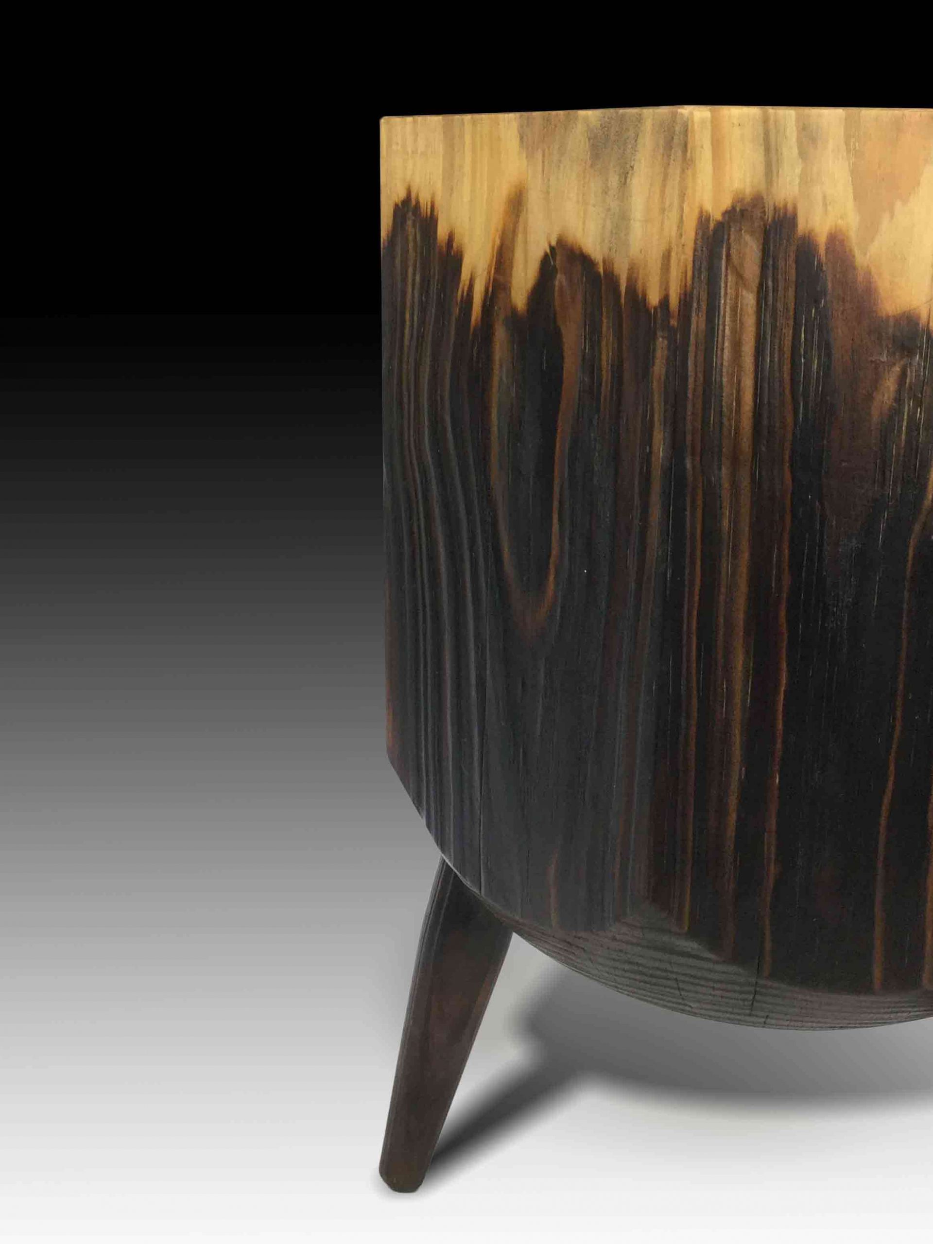 The Hexagon Organic Table is a rustic yet elegant masterpiece. Carefully charred using the Shou Sugi Ban technique, this conversational piece is a treat to own. Along with the organic cracks in the wood, the charring adds flavour and brings out a unique texture of the wood. The wood tone variations accentuate this exquisite furniture. This table that also functions perfectly as a stool was inspired by age-old Japanese tradition that prioritises zen energy and zen living. By adding zen-inspired furniture to their environment, one can strive to maintain a balanced, peaceful and positive lifestyle.